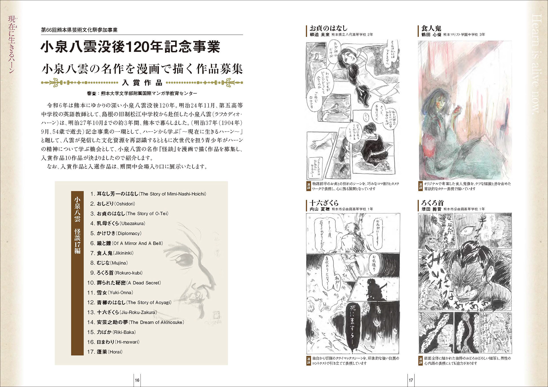小泉八雲の名作を漫画で描く作品募集 入賞作品パネル